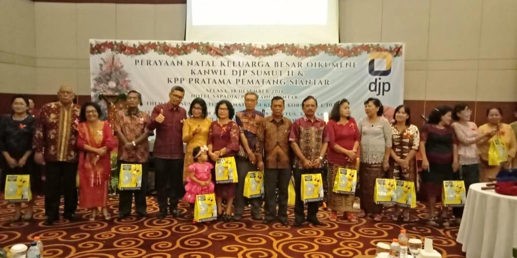 Selain melibatkan keluarga besar pegawai Kanwil DJP Sumut II dan KPP Pratama Pematang Siantar, panitia juga mengundang para pensiunan pajak (purba bakti) kantor pajak yang ada di Pematang Siantar. Tak itu pula, panitia juga mengundang sejumlah anak dari Panti Asuhan untuk mengikuti perayaan natal bersama. Sebagai bentuk kepedulian dan penghargaan, di akhir acara panitia menyerahkan bingkisan natal bagi para pensiunan pajak dan anak-anak dari Panti Asuhan.