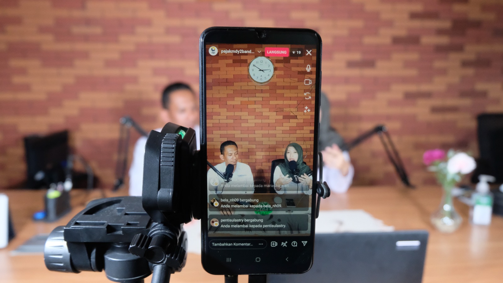 Tim Penyuluh Pajak Kantor Pelayanan Pajak (KPP) Madya Dua Bandung melaksanakan kegiatan edukasi perpajakan melalui siaran langsung pada kanal media sosial Instagram @pajakmdy2bandung di Ruang Penyuluhan KPP Madya Dua Bandung, Jalan Ibrahim Adjie no. 372, Kota Bandung (Senin, 7/8).