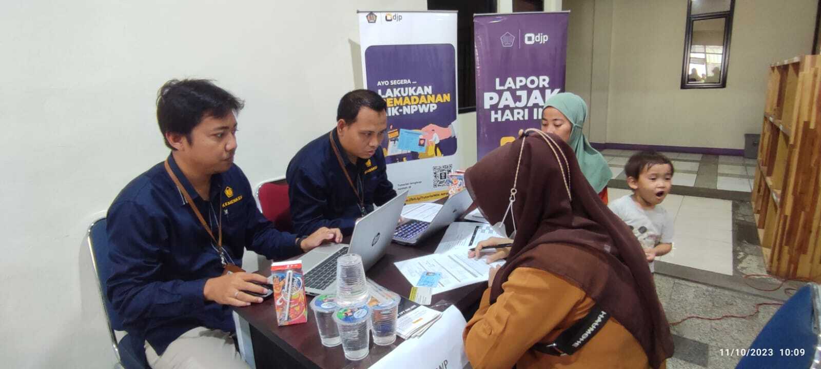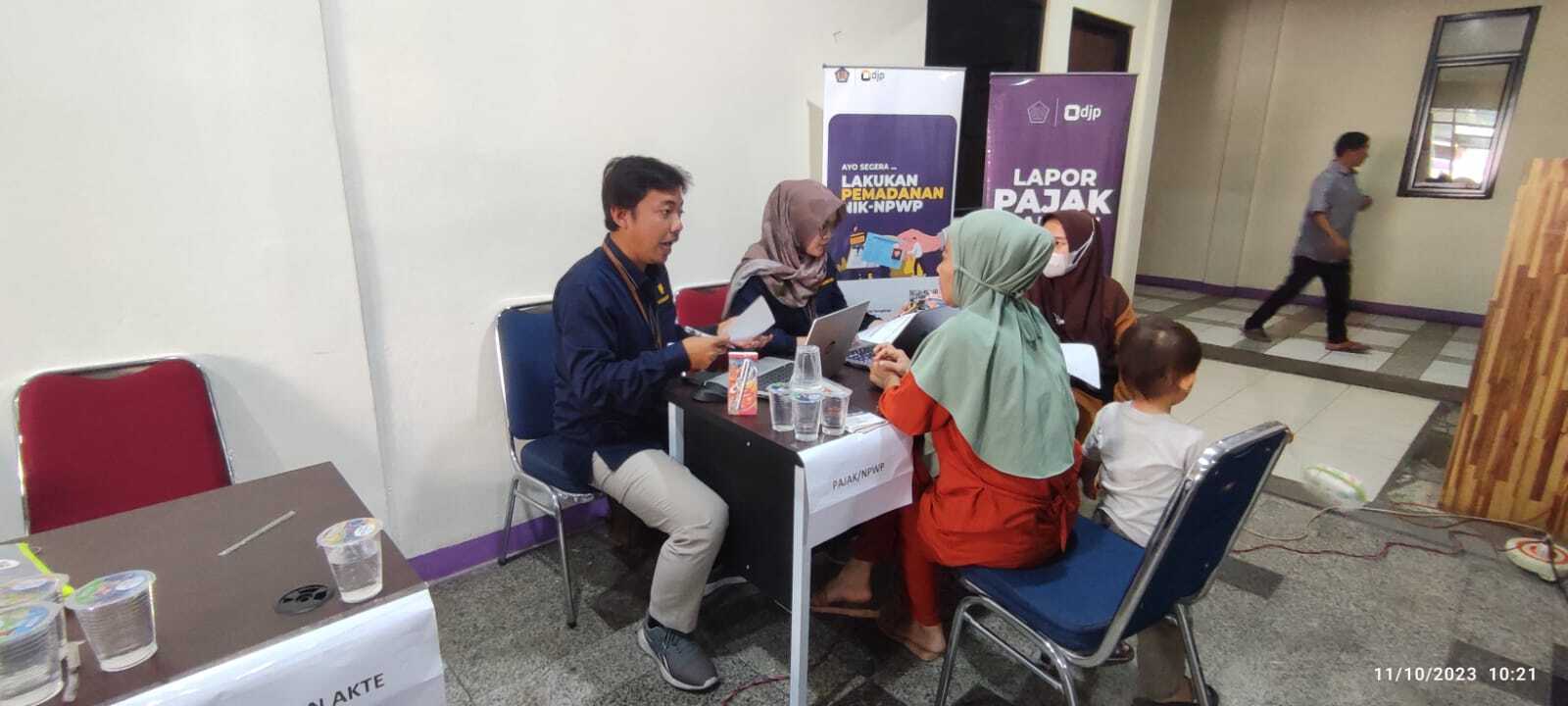 Kantor Pelayanan Pajak (KPP) Pratama Tigaraksa mengadakan layanan pojok pajak terkait pemadanan NIK-NPWP dan pelaporan SPT Tahunan Orang Pribadi kepada masyarakat Desa Cibadak. Kegiatan ini dilaksanakan di Gedung Kantor Kepala Desa Cibadak, Kecamatan Cikupa, Kabupaten Tangerang, Banten (Kamis, 11/10).