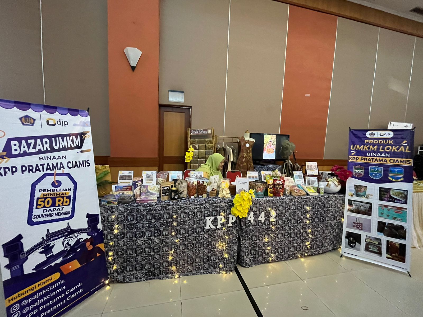 KPP Pratama Ciamis mengikutsertaan UMKM binaannya pada acara Bazar UMKM Darma Wanita Persatuan Kantor Wilayah DJP Jawa Barat I di Gedung Keuangan Negara Bandung (Rabu, 8/11). Kegiatan ini diselenggarakan dalam rangka untuk memasarkan dan mempromosikan produk pelaku Usaha Mikro, Kecil, dan Menengah UMKM Ciamis Banjar dan Pangandaran.