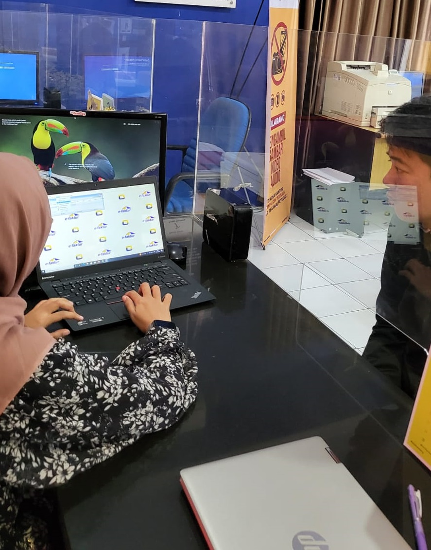Rukminah membimbing wajib pajak mulai dari penyiapan kata sandi akun PKP, sertifikat elektronik, passphrase, dan kode aktivasi akun PKP yang dapat dilihat pada menu profile akun e-Nofa wajib pajak di laman efaktur.pajak.go.id. Setelah tahap penyiapan, petugas melanjutkan dengan menginstall aplikasi e-Faktur 3.2 hingga penerbitan faktur pajak keluaran.