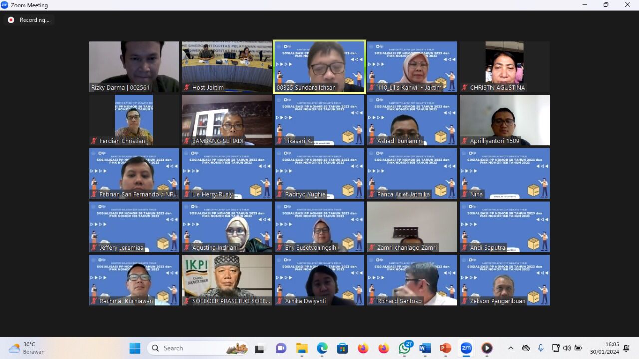 Kegiatan sosialisasi yang dihadiri oleh ratusan anggota IKPI Jakarta Timur diselenggarakan secara daring bertempat di Ruang Converance Lantai 9 Kanwil DJP Jakarta Timur. Hadir pada kegiatan ini adalah Plt. Kepala Kanwil DJP Jakarta Timur Dasto Ledyanto, Kepala Bidang Penyuluhan, Pelayanan dan Hubungan Masyarakat Sugeng Satoto serta Ketua IKPI Jakarta Timur Sundara Ichsan.