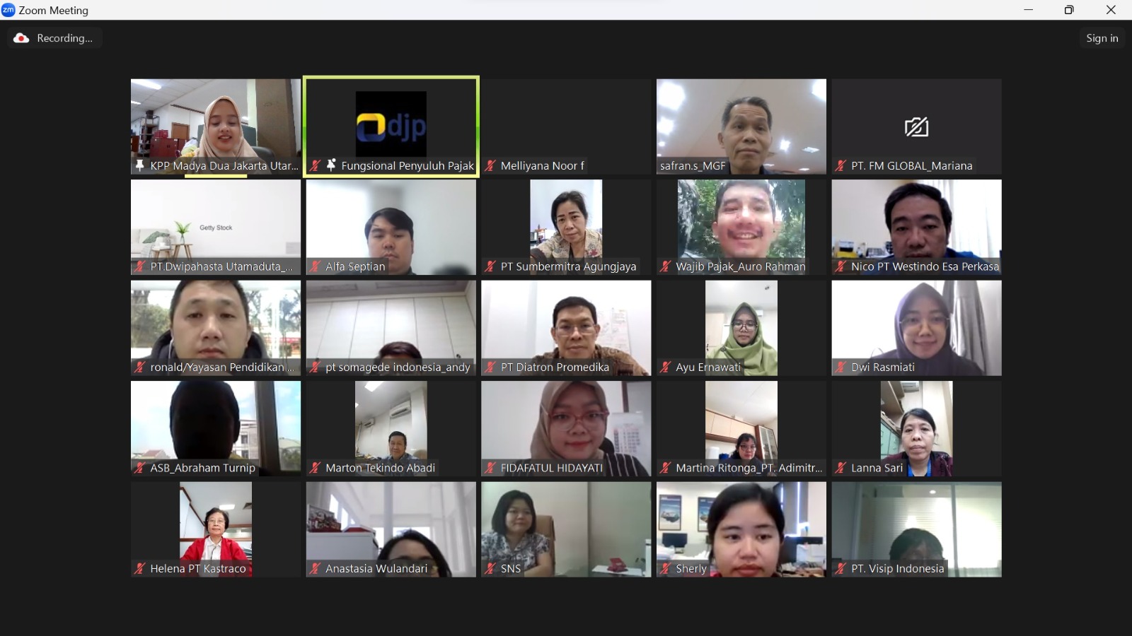 Kantor Pelayanan Pajak (KPP) Madya Dua Jakarta Utara mengadakan sosialisasi PMK-168 tentang Petunjuk Pelaksanaan Pemotongan Pajak atas Penghasilan Sehubungan dengan Pekerjaan, Jasa, atau Kegiatan Pribadi secara daring melalui Zoom Meeting ( Jumat, 2/2).