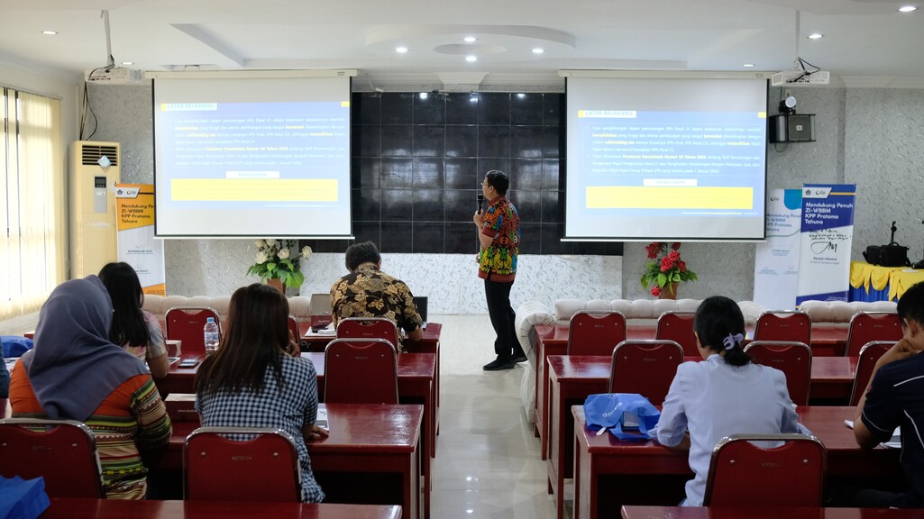 Kantor Pelayanan Pajak (KPP) Pratama Tahuna mengundang para bendaharawan di lingkungan Kabupaten Kepulauan Sangihe untuk mengikuti sosialisasi perpajakan di Aula KPP Pratama Tahuna, Sulawesi Utara (Rabu, 1/2). Sosialisasi dibawakan oleh Kepala Seksi Pelayanan Edo Muhammad Suhada. Materi yang dibawakan terkait Peraturan Menteri Keuangan Nomor PMK-168 Tahun 2023 serta Pembuatan Bukti Potong 1721-A2.