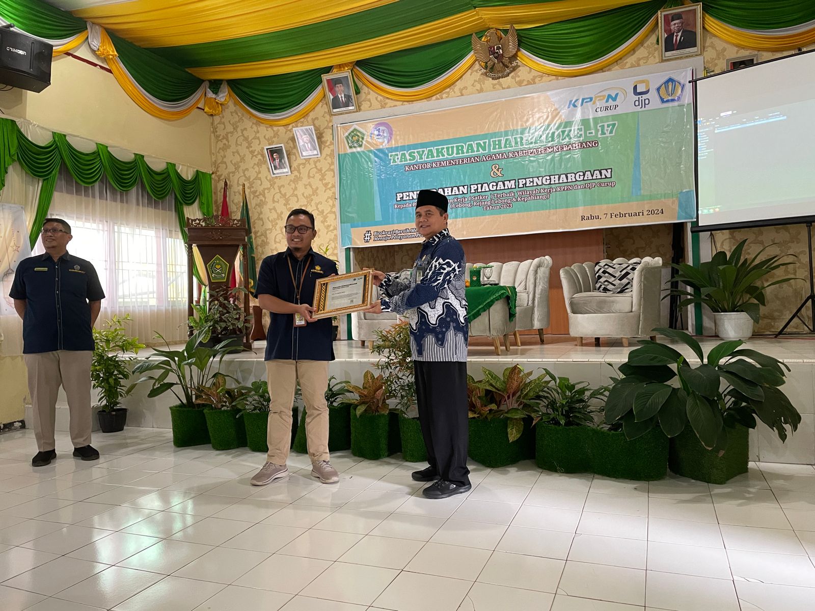 Kepala Kantor Kemenag Kepahiang Drs. Albahri, M.Si., mengucapkan terima kasih atas penghargaan yang diberikan oleh KPP Pratama Curup dan diharapakan penghargaan ini dapat memberikan sumber motivasi kepada Kemenag Kepahiang.