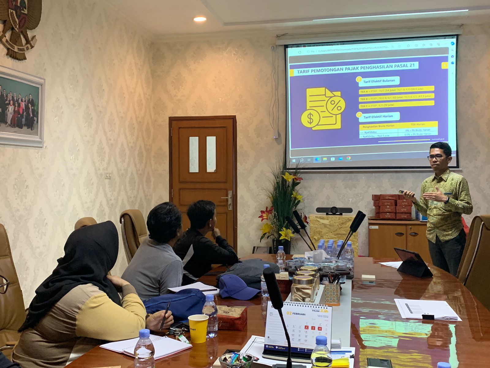 Pada kesempatan ini, tim penyuluh KPP Pratama Karawang mengundang Wajib Pajak badan yang termasuk dalam Daftar Sasaran Penyuluhan Terpilih sebagai peserta sosialisasi dengan harapan dapat meningkatkan pengetahuan terhadap hak dan kewajiban di bidang perpajakan. Pukul 09.30 WIB acara dimulai dan dibuka oleh Agus Purnomo sebagai Koordinator Tim Penyuluhan KPP Pratama Karawang. Agus memaparkan beberapa aturan baru terkait perpajakan salah satunya adalah PMK 168 Tahun 2023 tentang Petunjuk Pelaksanaan Pemotongan Pajak atas Penghasilan Sehubungan dengan Pekerjaan, Jasa, atau Kegiatan Orang Pribadi.