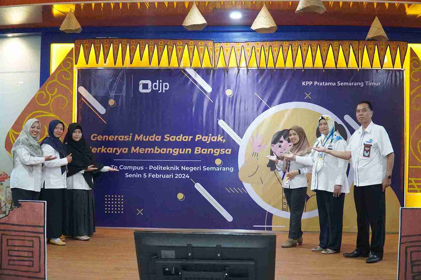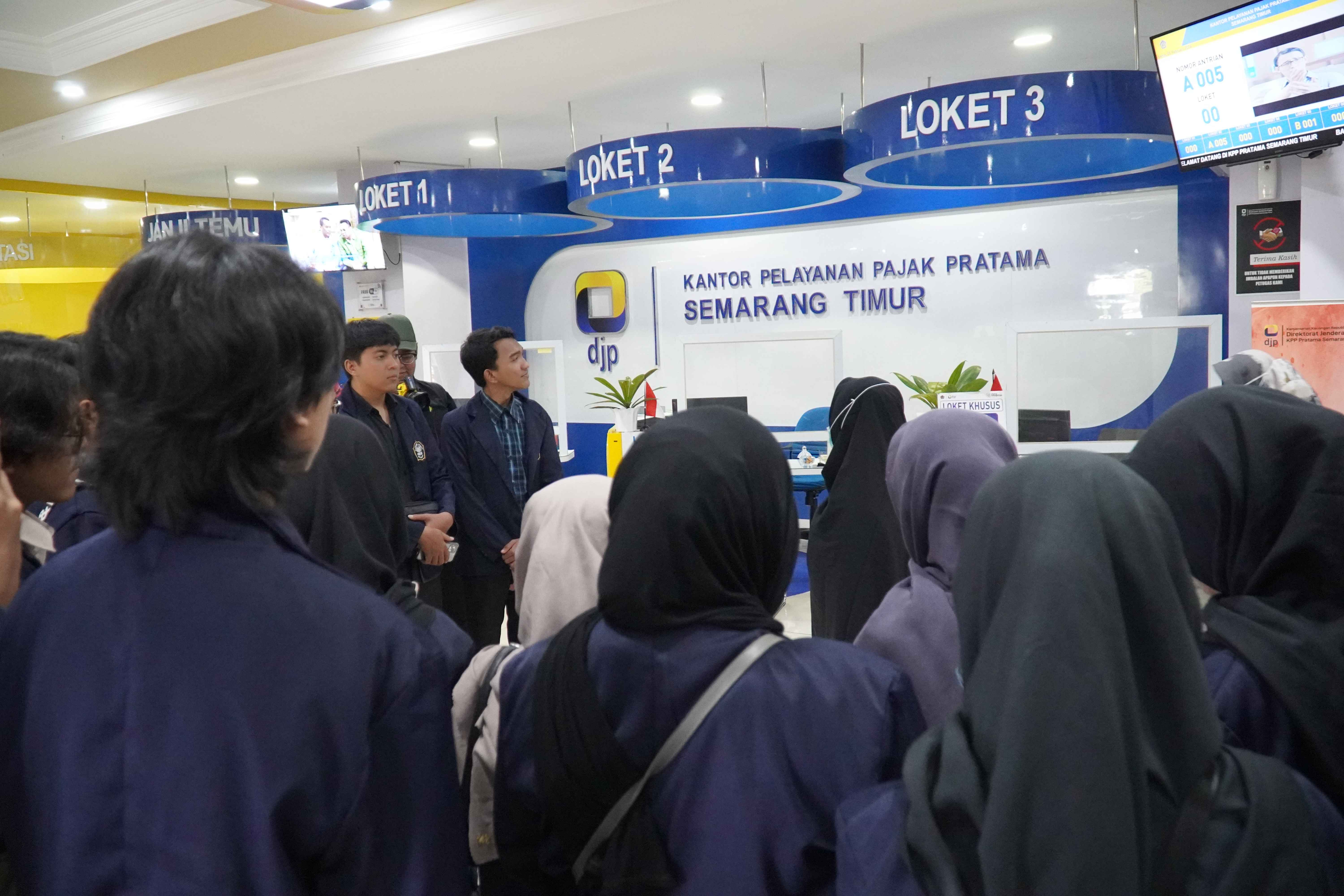Kantor Pelayanan Pajak (KPP) Pratama Semarang Timur menerima kunjungan Office Tour dari 81 mahasiswa jurusan Akuntansi Politeknik Negeri Semarang di Semarang (Senin, 5/2). Kegiatan Office Tour ini dilaksanakan secara tatap muka di Aula Lantai 4 KPP Pratama Semarang Timur dengan mengangkat tema Generasi Muda Sadar Pajak, Berkarya Membangun Bangsa.