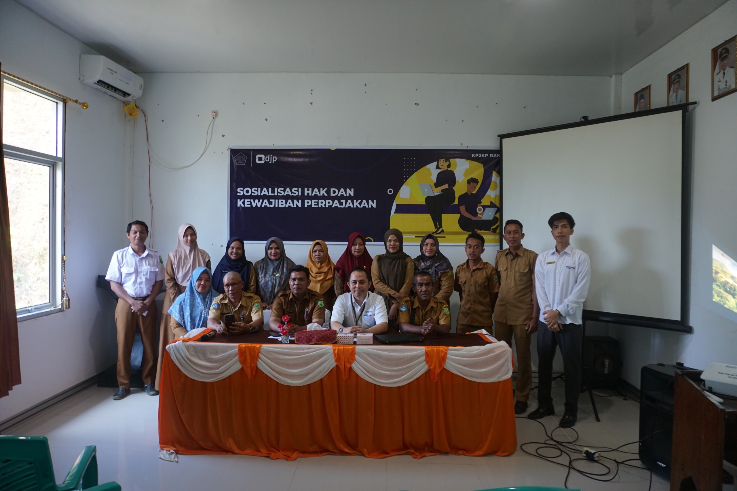 Kantor Pelayanan, Penyuluhan, dan Konsultasi Perpajakan (KP2KP) Ranai menyelenggarakan sosialisasi hak dan kewajiban perpajakan di Kantor Camat Pulau Tiga Barat, Kabupaten Natuna, Kepulauan Riau (Senin, 26/2). Acara ini dihadiri oleh bendahara dan pengelola keuangan dari berbagai instansi pemerintah setempat.