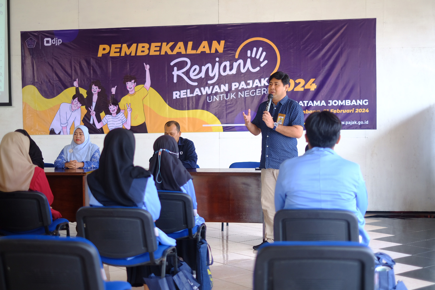 Kantor Pelayanan Pajak (KPP) Pratama Jombang memberikan pembekalan kepada 25 relawan pajak tahun 2024 secara luring di aula KPP Pratama Jombang (Kamis, 1/2).
