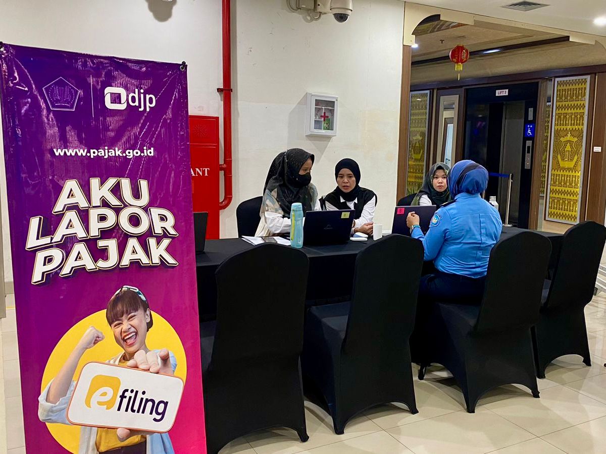 Kantor Pelayanan Pajak (KPP) Pratama Natar menggelar Pojok Pajak di Bandar Udara Internasional Radin Inten II, Jalan Branti Raya, Brantiraya, Natar, Lampung Selatan, Lampung (Kamis, 7/3). Kegiatan pojok pajak dilaksanakan di lantai 1 sebelah counter check-in Bandara Radin Inten II.