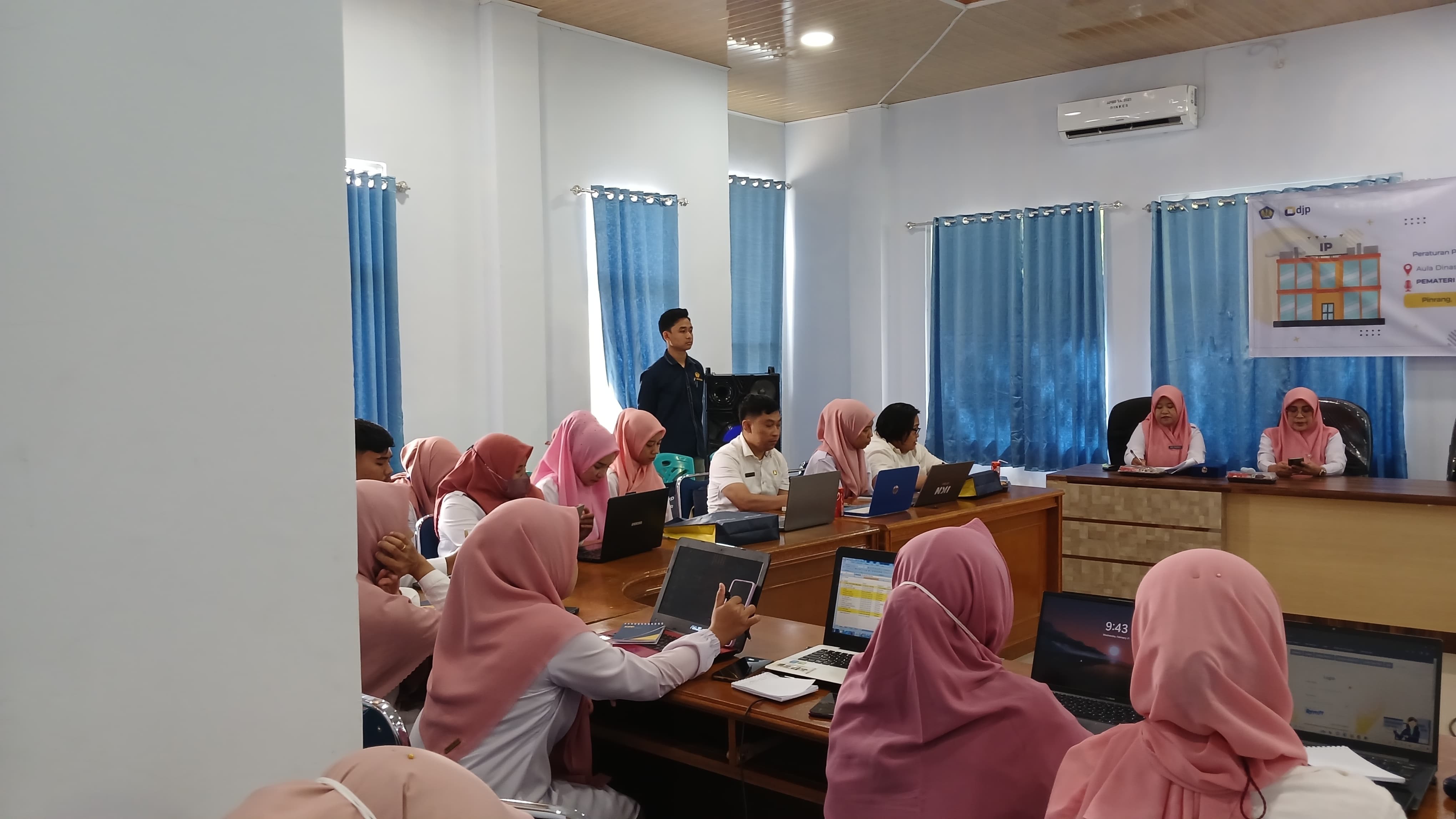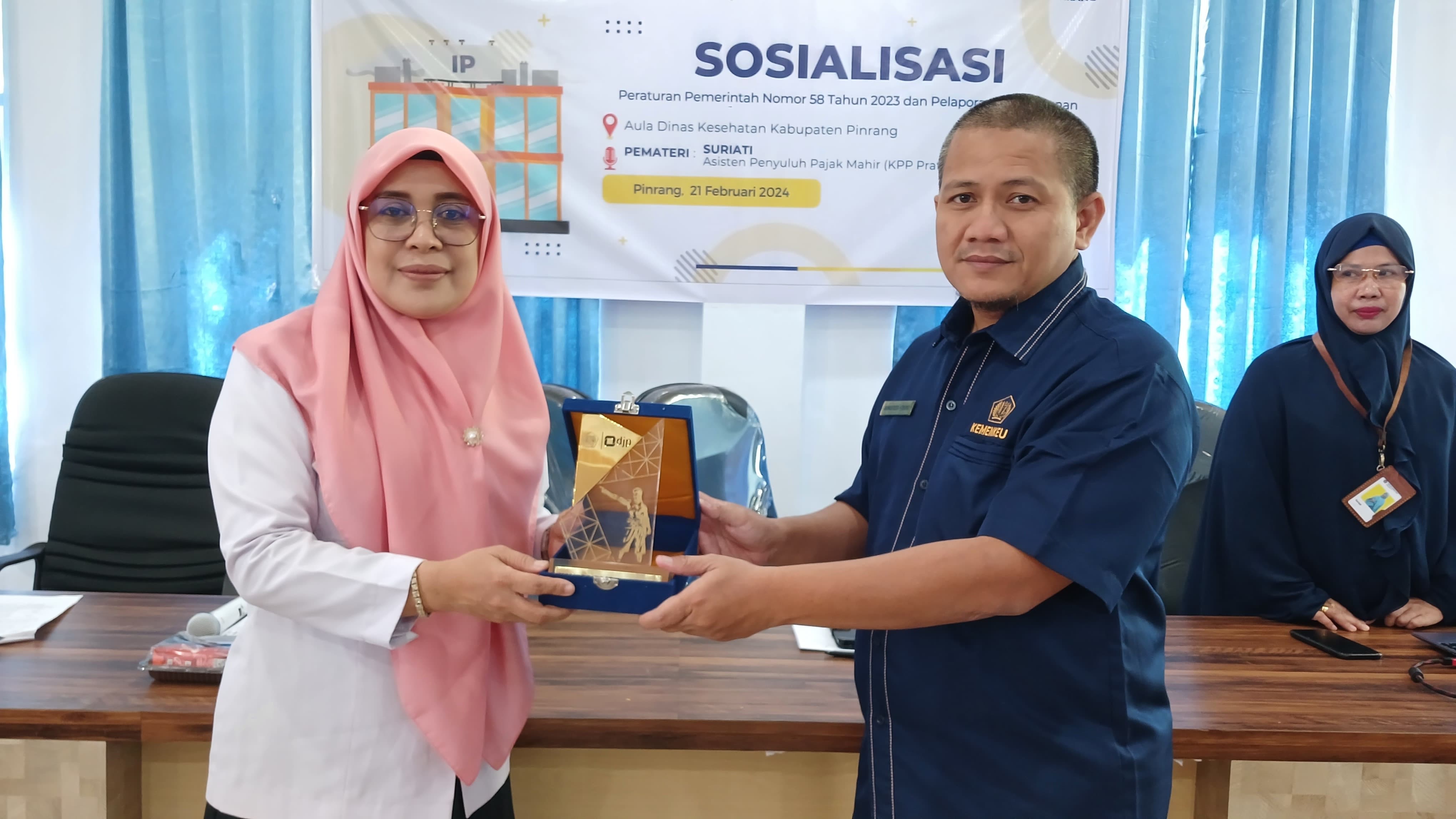 Kantor Pelayanan, Penyuluhan, dan Konsultasi Perpajakan (KP2KP) Pinrang mengadakan sosialisasi kepada Bendahara dan Operator Pusat Kesehatan Masyarakat (Puskesmas) di bawah naungan Dinas Kesehatan (Dinkes) Kabupaten Pinrang (Rabu, 21/2). Sosialisasi tersebut mengusung materi Peraturan Pemerintah (PP) Nomor 58 Tahun 2023 yang bertempat di Aula Dinkes Kabupaten Pinrang, Kelurahan Macorawalie, Kecamatan Watang Sawitto, Kabupaten Pinrang.