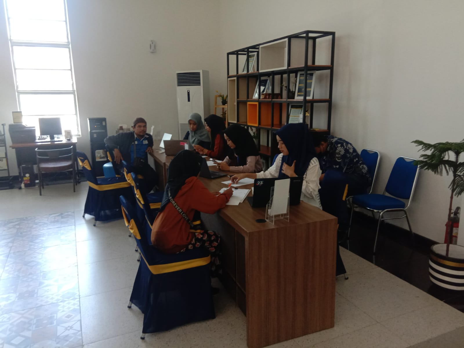 Tidak hanya pegawai di KPP Pratama Semarang Tengah yang bertugas di batas waktu pelaporan SPT Tahunan PPh Orang Pribadi. Ada mahasiswa yang turut membantu pemberian asistensi pelaporan SPT Tahunan PPh secara elektronik melalui e-Filing di TPT KPP Pratama Semarang Tengah, Kota Semarang (Minggu, 31/3).