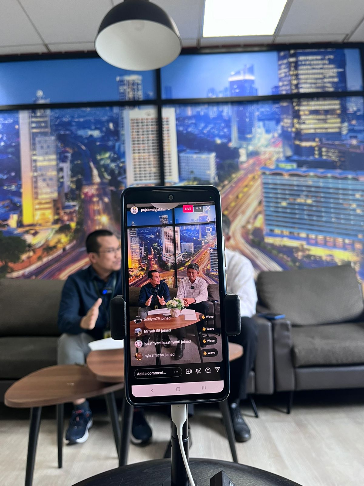 Kantor Pelayanan Pajak (KPP) Madya Jakarta Timur menggelar sosialisasi Peraturan Menteri Keuangan Nomor 8 Tahun 2024 (PMK-8/2024) tentang Pajak Pertambahan Nilai atas Penyerahan Kendaraan Bermotor Listrik Berbasis Baterai Roda Empat Tertentu dan Kendaraan Bermotor Listrik Berbasis Baterai Bus Tertentu yang Ditanggung Pemerintah (Kamis, 25/4). Dipandu oleh Penyuluh Pajak Iyan Riyadi, sosialisasi disiarkan secara langsung melalui Instagram Live dari Aula Caretaking KPP Madya Jakarta Timur. Puluhan wajib pajak terpantau mengikuti siaran langsung tersebut.