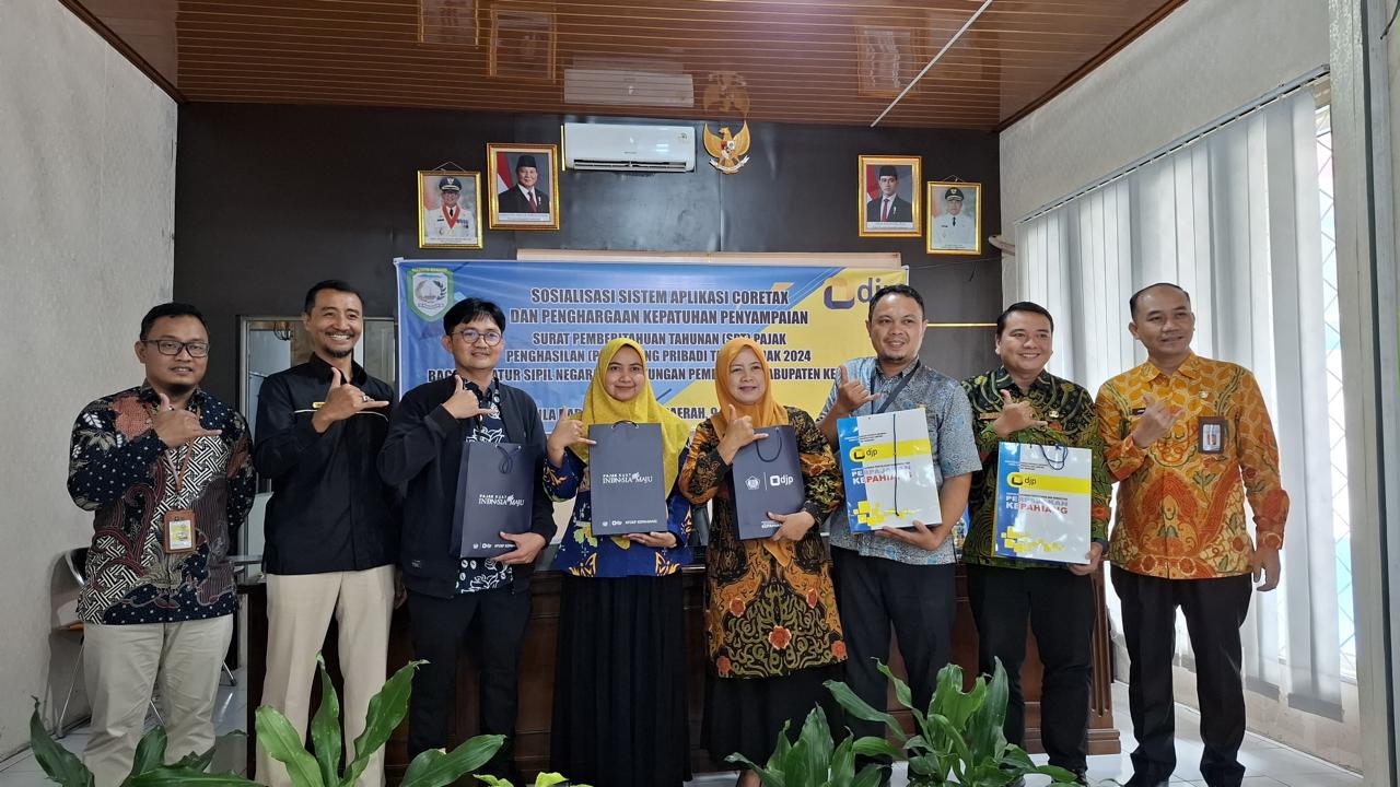 Kantor Pelayanan, Penyuluhan, dan Konsultasi Perpajakan (KP2KP) Kepahiang melaksanakan sosialisasi sistem aplikasi Coretax DJP sekaligus memberikan penghargaan kepada Badan Keuangan Daerah (BKD) Kepahiang atas kepatuhan penyampaian Surat Pemberitahuan (SPT) Tahunan Orang Pribadi yang diadakan di Aula Badan Kepegawaian Daerah (BKD) Kepahiang, Desa Pelangkian, Kabupaten Kepahiang (Rabu, 9/1).