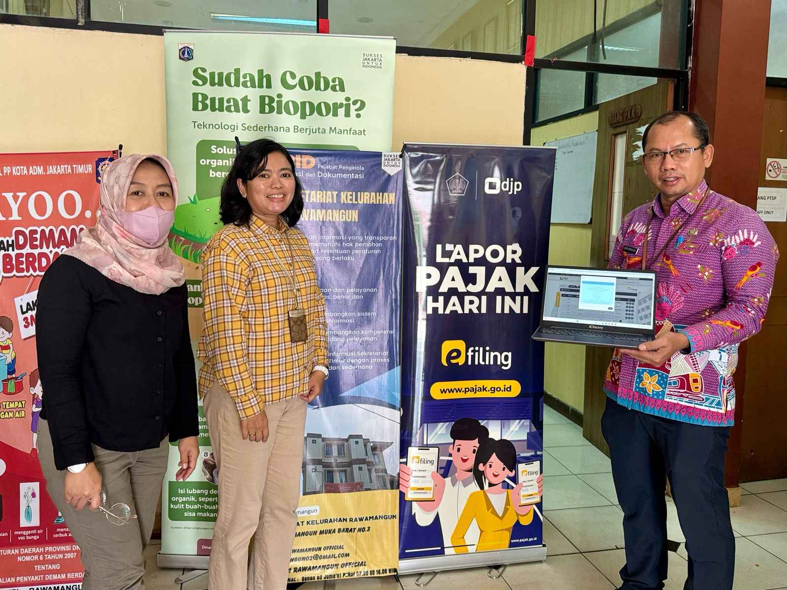 Hari kedua pojok pajak di Kelurahan Rawamangun, tercatat 65 wajib pajak berhasil melaporkan SPT Tahunan Orang Pribadi.