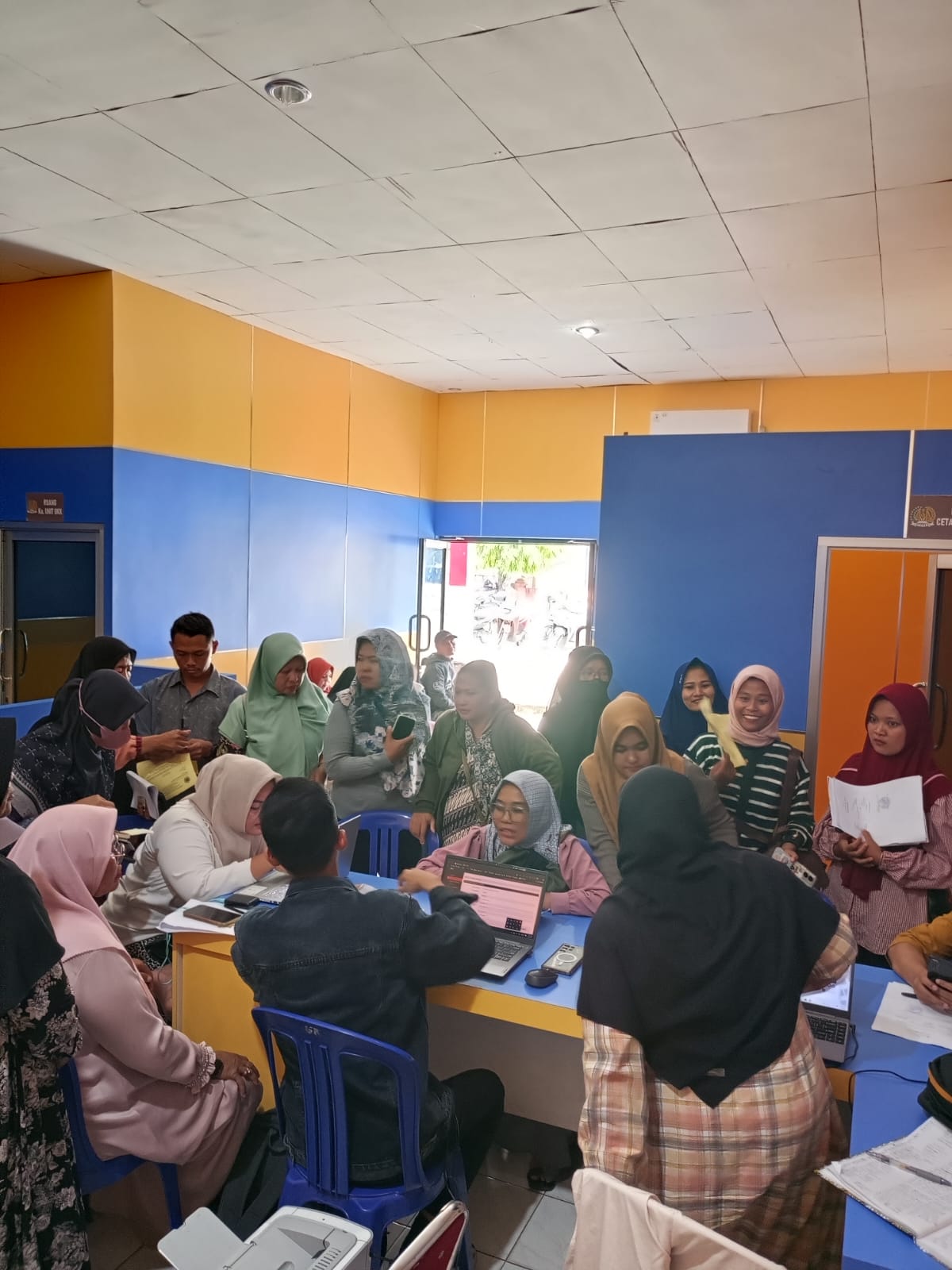 "Karena sudah terlalu banyak, kami memindahkan pelayanan ke bangunan sebelah yang lebih luas dan kebetulan kosong," ungkap Yudho, Sekretaris Desa Giri Kencana.