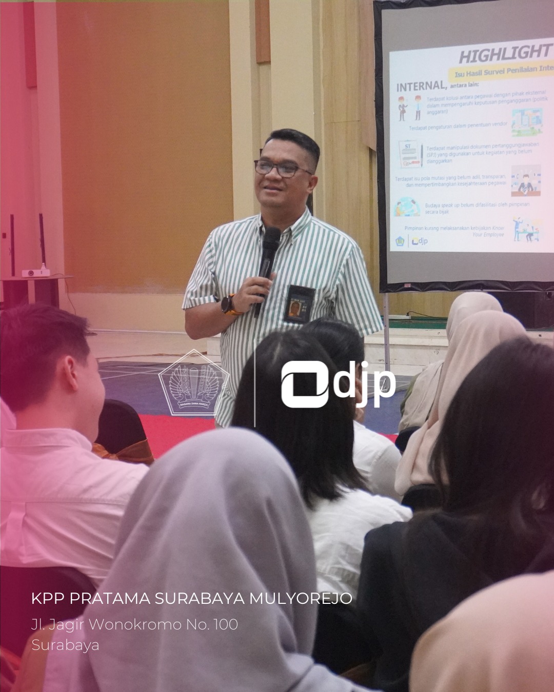 Kantor Pelayanan Pajak (KPP) Pratama Surabaya Mulyorejo Bersama dengan para relawan pajak untuk negeri (Renjani) Tahun 2025 menyelenggarakan kegiatan Tax Goes To Campus di Aula KPP Pratama Surabaya Mulyorejo, Kota Surabaya (27/5).