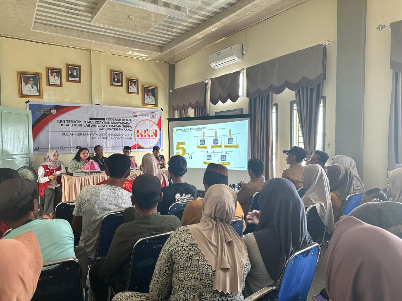 Kantor Pelayanan Pajak (KPP) Pratama Parepare menggelar kegiatan sosialisasi perpajakan bagi pelaku Usaha Mikro, Kecil, dan Menengah (UMKM) di Desa Ujung Labuang, Kecamatan Suppa, Kabupaten Pinrang (Selasa, 22/7). Kegiatan ini dilaksanakan atas undangan dari mahasiswa Universitas Hasanuddin yang tengah menjalankan Kuliah Kerja Nyata (KKN) Tematik Pemberdayaan Masyarakat.