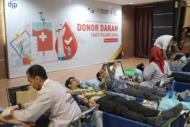 Kanwil DJP Sulawesi Selatan, Barat, dan Tenggara (Sulselbartra) melangsungkan acara Bakti Sosial Donor Darah yang menjadi rangkaian kegiatan dalam rangka Peringatan Hari Pajak Nasional (Selasa, 9/7). Kegiatan ini diadakan di aula Kanwil DJP Sulselbartra dengan diikuti pegawai perwakilan dari Kantor Pelayanan Pajak di Kota Makassar serta kantor unit Kementerian Keuangan di lingkungan GKN Makassar sebagai peserta.