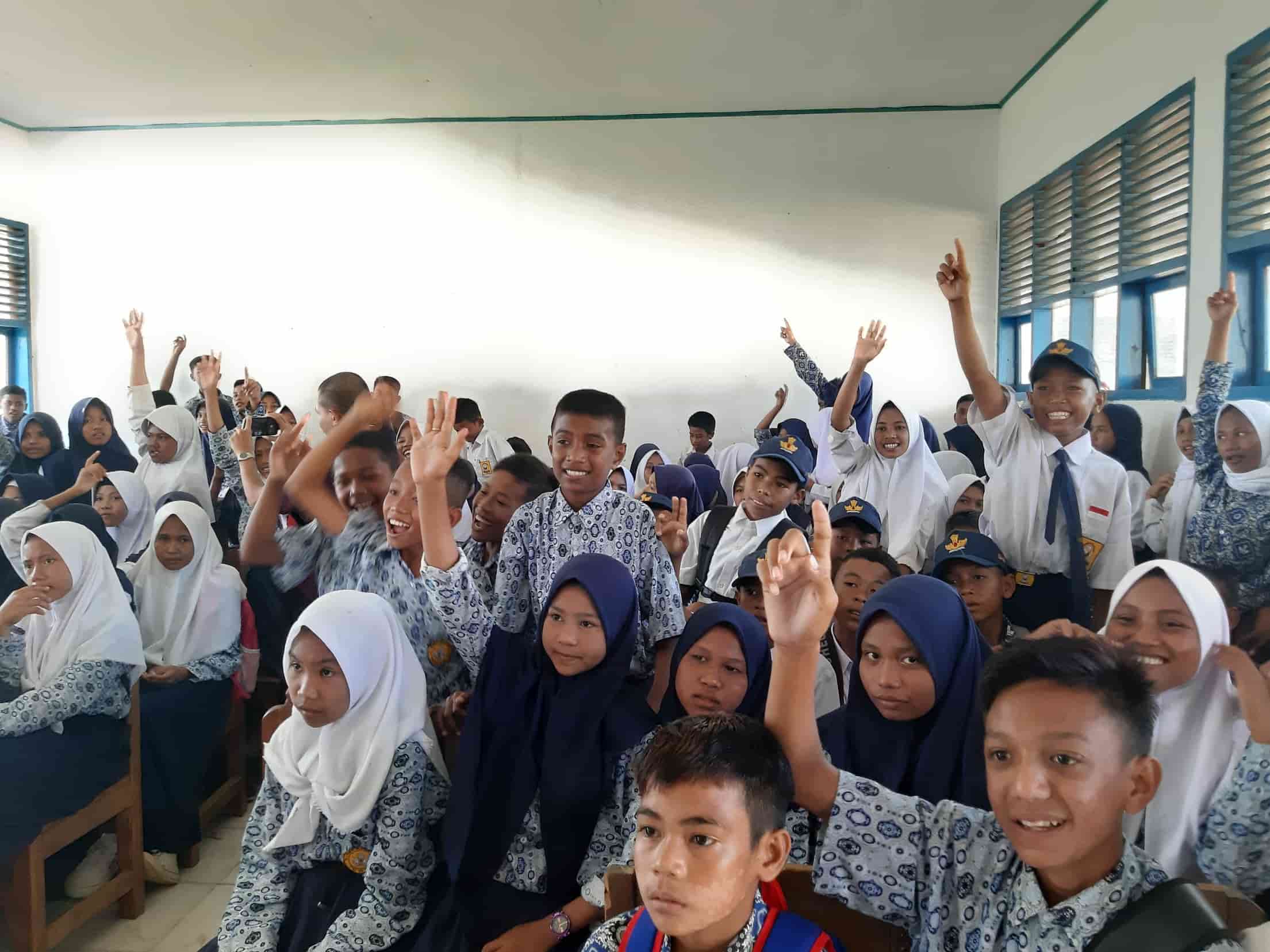 Sesampainya di dermaga Towea, Tim Penyuluh melanjutkan perjalanan dengan berjalanan kaki sembari membawa berbagai perlengkapan dan peralatan sederhana sebagai alat penunjang penyuluhan. Di SMP Negeri 1 Towea, kami disambut oleh 157 siswa-siswi SMP Negeri 1 Towea yang telah duduk rapi di bangku kelas. Karena ruang kelas tidak cukup untuk menampung antusiasme dari para murid SMP Negeri 1 Towea, ada beberapa murid yang duduk luar ruang kelas. Peralatan yang sederhana dan seadanya tidak lantas menjadi kendala bagi keberlangsungan acara.