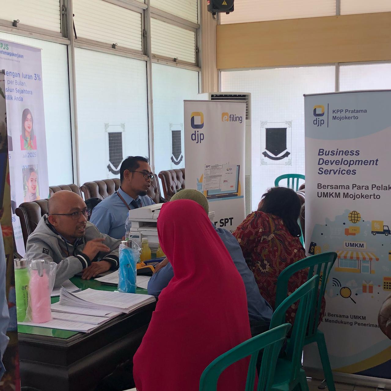Pemerintah Kota Mojokerto mengundang Kanwil DJP Jawa Timur II dan KPP Pratama Mojokerto untuk hadir dalam acara peringatan Hari Nasional ke IV UMKM Kota Mojokerto di Graha Praja Kota Mojokerto (28/8). Bertepatan dengan hal itu, dilaksanakan Business Development Service (BDS) yang diikuti 200 pelaku UMKM Mojokerto. KPP Pratama Mojokerto juga membuka stand pelayanan pajak antara lain pendaftaran NPWP dan konsultasi perpajakan.