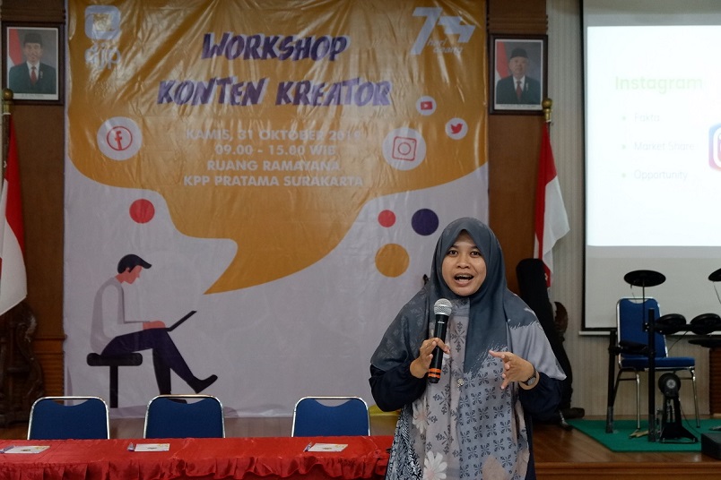 KPP Pratama Surakarta menyelenggarakan BDS lanjutan tentang Konten Kreator di Ruang Ramayana KPP Pratama Surakarta (Kamis, 31/10). BDS ini merupakan lanjutan dari BDS sebelumnya tentang Food Photography with Smartphone yang diselenggarakan di bulan Mei 2019. Peserta BDS adalah para pelaku UMKM yang telah mengikuti BDS sebelumnya. Wahyu Mardhatillah menjadi narasumber Konten Kreator dan memberikan materi serta praktek langsung pembuatan konten instagram.