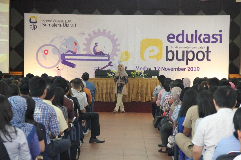 Kantor Wilayah (Kanwil) Direktorat Jenderal Pajak (DJP) Sumatera Utara I dan Kantor Pelayanan Pajak (KPP) Madya Medan melaksanakan edukasi e-Bupot di Aula Serbaguna Kanwil DJP Sumatera Utara I (Selasa, 12/11).