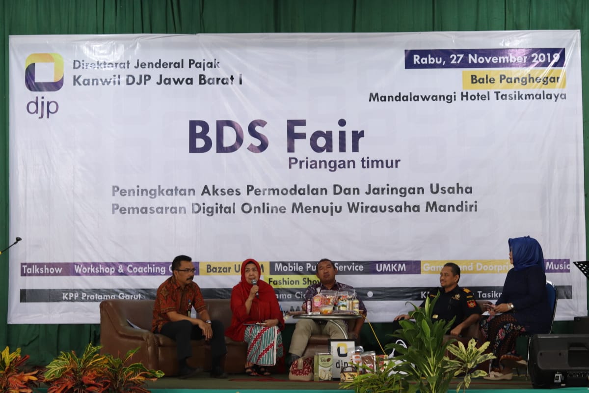 Kantor Wilayah DJP Jawa Barat I bekerja sama dengan KPP Pratama Tasikmalaya, KPP Pratama Ciamis, dan KPP Pratama Garut, menyelenggarakan Business Development Services (BDS) 2019 se-Priangan Timur di Hotel Mandalawangi, Tasikmalaya (Rabu, 27/11). Kegiatan BDS tahun ini bertema “Peningkatan Akses Permodalan Dan Jaringan Usaha Pemasaran Digital Online Menuju Wirausaha”.