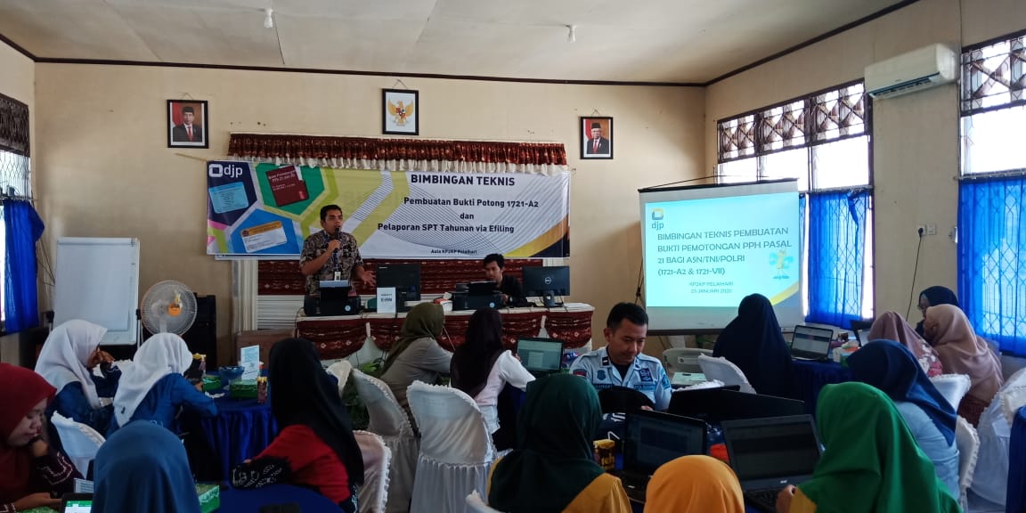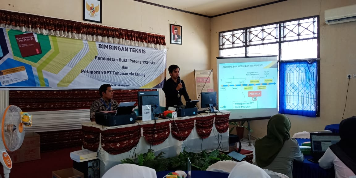 Kantor Pelayanan Penyuluhan dan Konsultasi Perpajakan (KP2KP) Pelaihari kembali menyelenggarakan kegiatan Bimbingan Teknis (Bimtek) Pembuatan Bukti Potong 1721-A2 & 1721-VII di Aula KP2KP Pelaihari, Kabupaten Tanah Laut, Kalimantan Selatan (Kamis, 23/1).