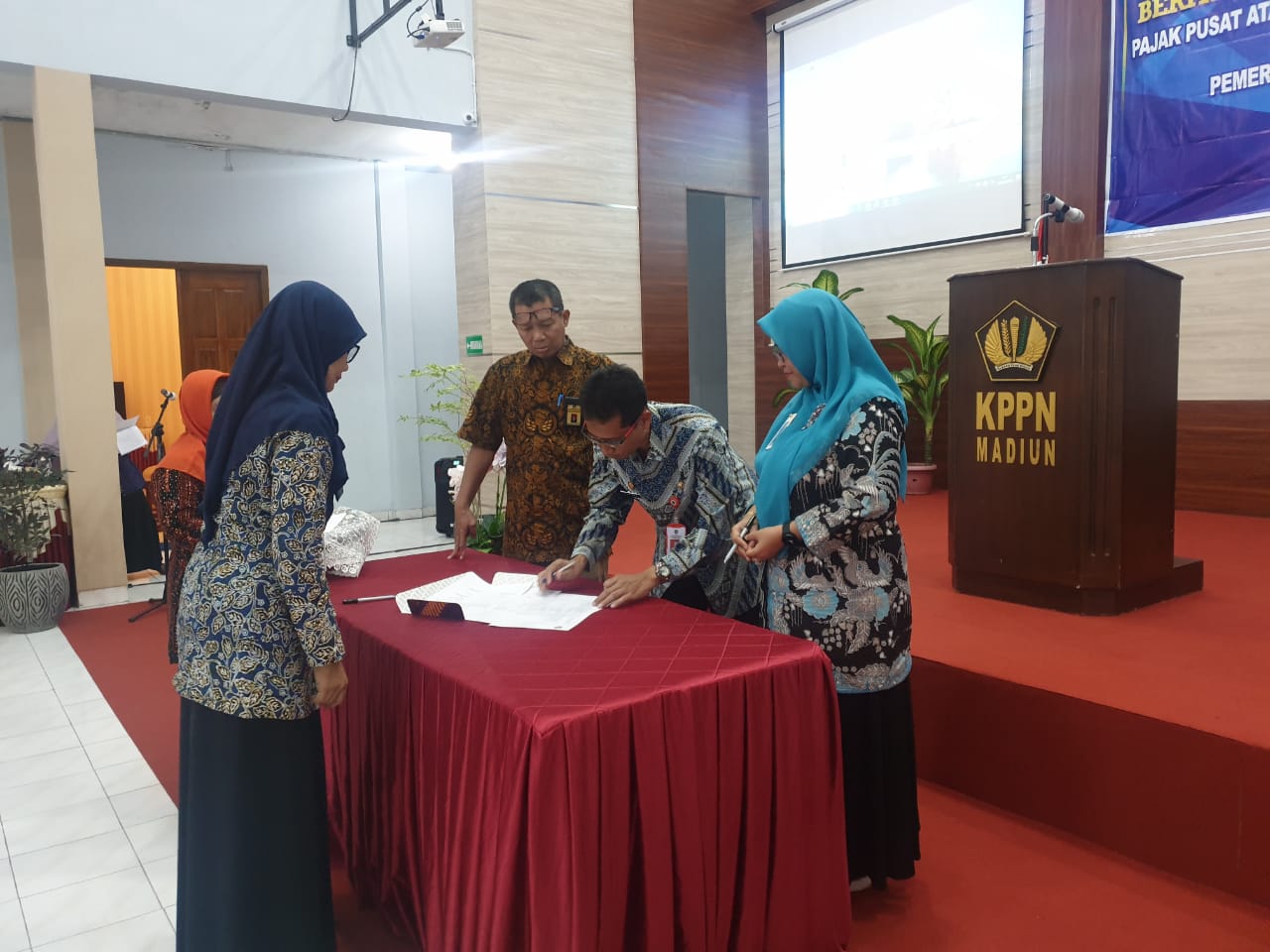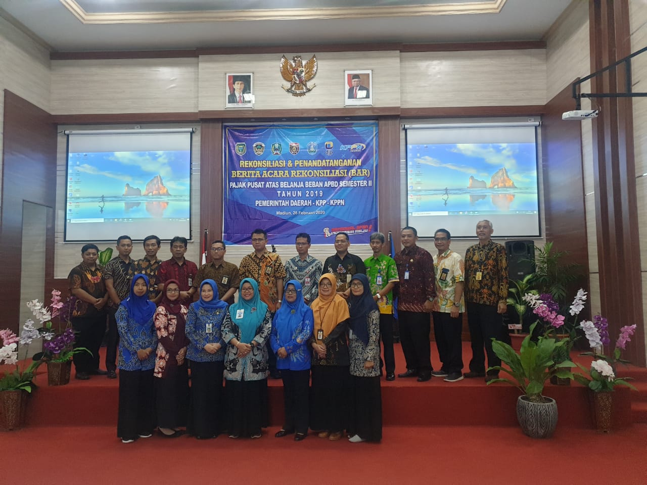 Pemerintah Daerah Kabupaten/Kota Madiun menyelenggarakan acara rekonsiliasi pajak pusat atas belanja beban APBD bersama KPP Pratama Madiun dan KPPN Madiun di Aula KPPN Madiun (Jumat, 28/2).