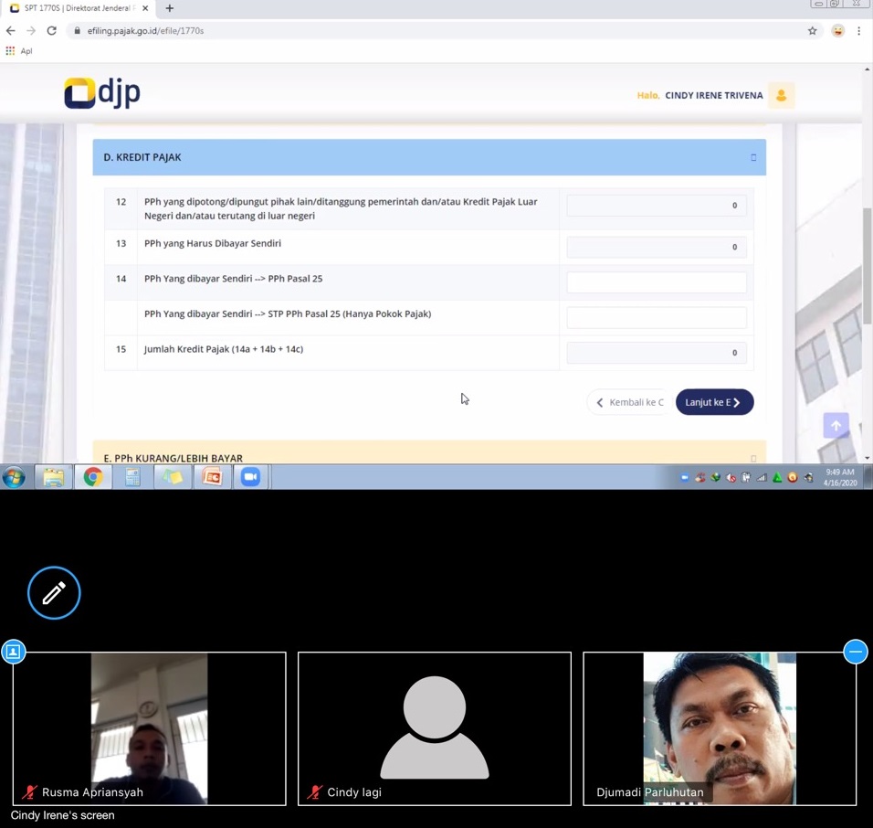 KPP Pratama Pontianak Barat mengadakan kelas pajak dengan tema Lapor SPT dengan e-Filing untuk Karyawan, ASN/TNI/Polri dengan penghasilan bruto diatas 60 juta setahun (Kamis 16/4). Kelas pajak dilakukan secara online dengan narasumber Account Representative KPP Pratama Pontianak Barat Windy Purboyo.