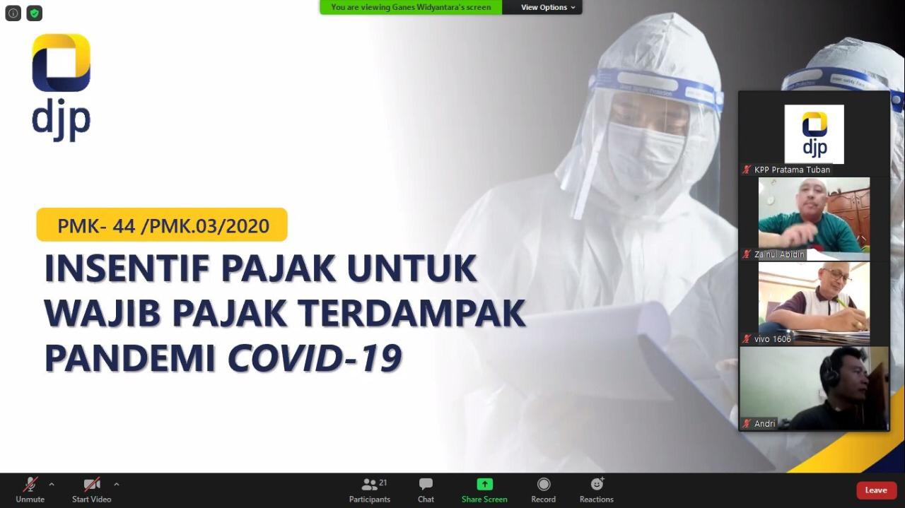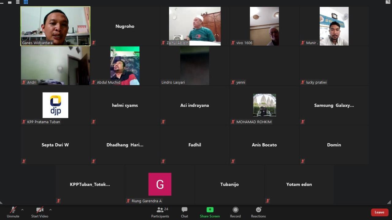 KPP Pratama Tuban melaksanakan kegiatan penyuluhan BDS (Business Development Services) secara daring (Senin, 15/6). Sebanyak 35 wajib pajak Usaha Mikro Kecil Menengah (UMKM) Kabupaten Tuban ikut serta dalam kegiatan penyuluhan ini.