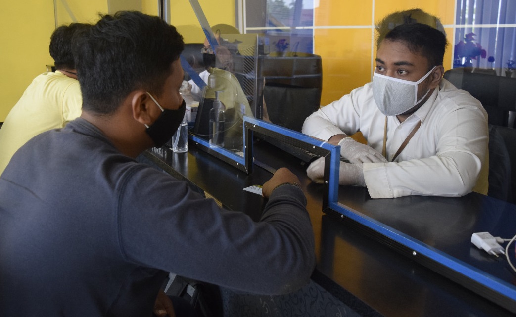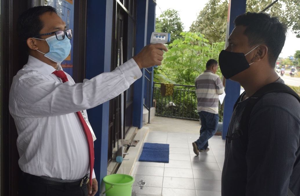 Protokol kesehatan yang dijalankan di antaranya meliputi cuci tangan sebelum memasuki wilayah kantor, wajib memakai masker/face shield, pengukuran suhu tubuh, dan antrean yang menerapkan physical distancing.