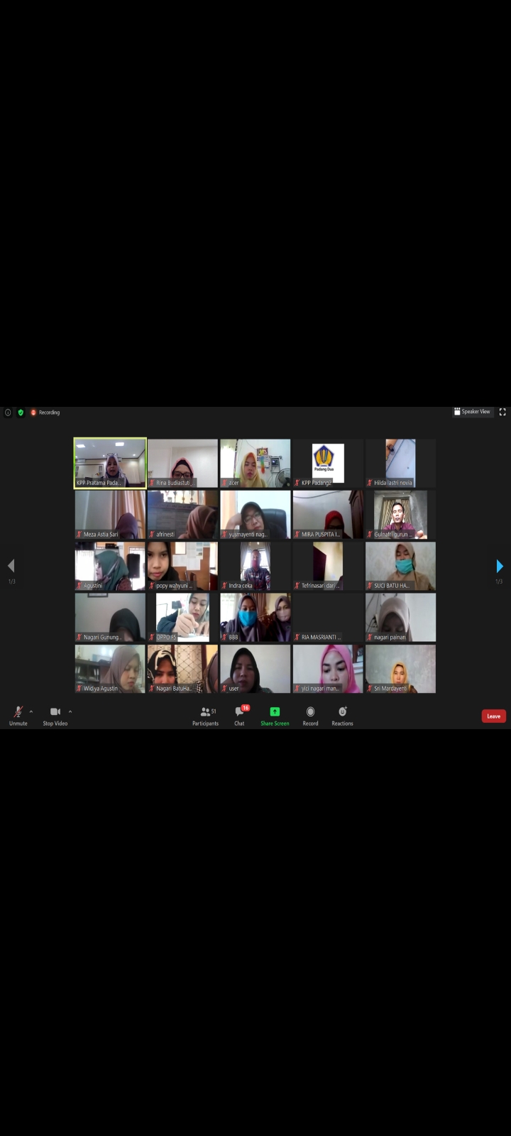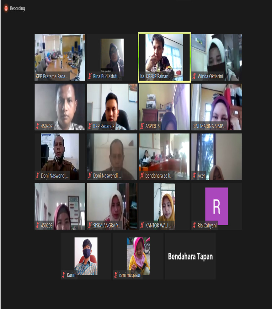 KPP Pratama Padang Dua bekerja sama dengan KP2KP Painan mengadakan Kelas Pajak secara daring tentang Edukasi Kewajiban Perpajakan Bendahara Nagari yang diikuti oleh para Bendahara Nagari di Kabupaten Pesisir Selatan, Padang (Kamis, 25/6).
