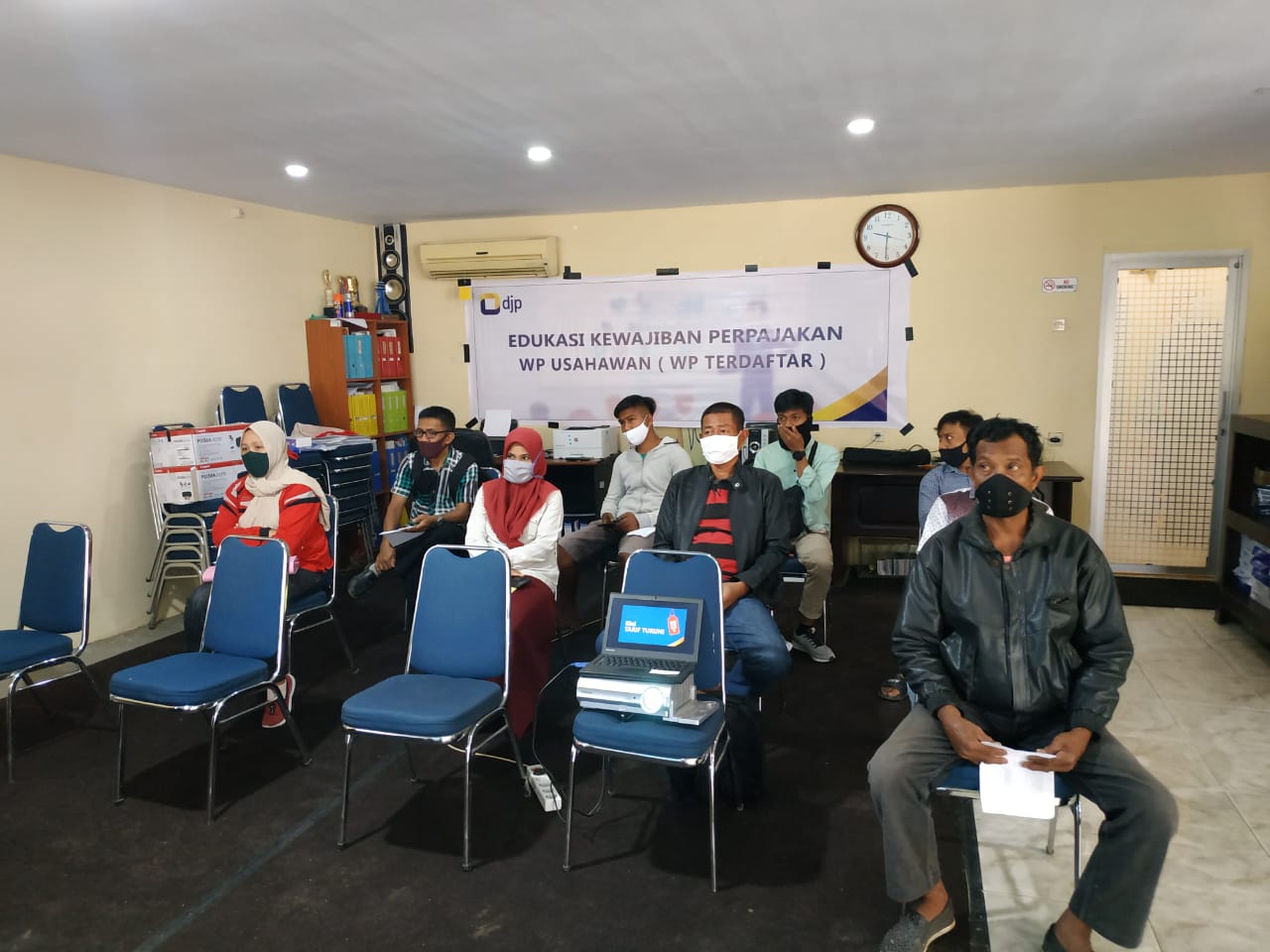 Pegawai KP2KP Rumbia Ahmad Feni Hasfian yang bertindak sebagai pemateri menjelaskan tentang hak dan kewajiban perpajakan usahawan. Pemateri mengatakan walaupun masa pandemi Covid-19, pajak yang harus dibayar tetap sebesar 0.5 % dari omzet setiap bulan.