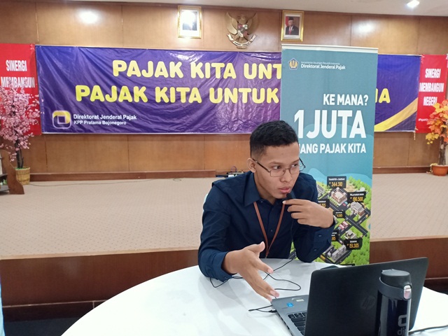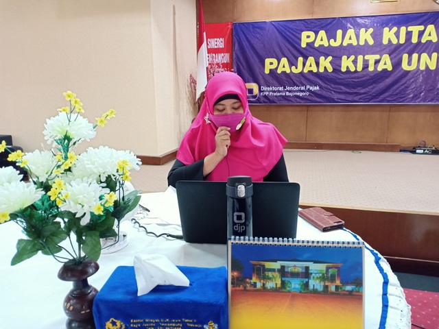 Kantor Pelayanan Pajak (KPP) Pratama Bojonegoro melaksanakan sosialisasi kewajiban perpajakan Bendahara Pemerintah Desa kepada 188 bendahara desa di Kabupaten Bojonegoro secara daring melalui media Zoom Meeting dan grup WhatsApp yang dilangsungkan di KPP Pratama Bojonegoro (Kamis, 25/06).