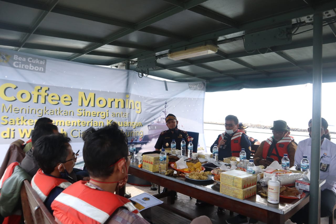 KPP Pratama Cirebon Dua bersama enam satuan kerja (satker) Kementerian Keuangan (Kemenkeu) lainnya di wilayah Cirebon, Indramayu, Majalengka, dan Kuningan atau yang lebih akrab disapa dengan Wilayah Ciayumajakuning melaksanakan kegiatan Coffee Morning “Rapat Koordinasi Antarsatker Kementerian Keuangan Ciayumajakuning” di atas kapal patroli Bea Cukai BC 9006 yang merupakan kapal milik Pangkalan Sarana Operasi Bea Cukai Tanjung Priok yang sedang berpatroli di Cirebon (Kamis, 02/07).
