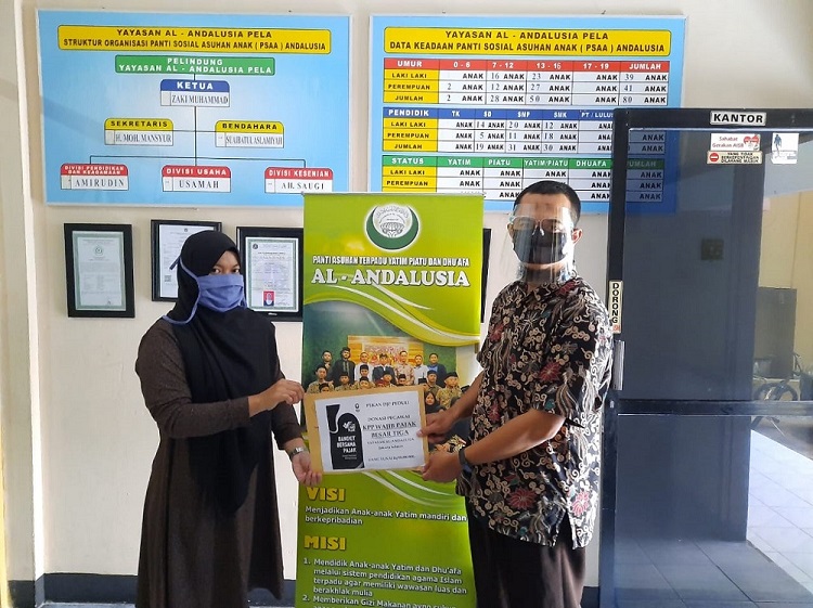 Kepada anak-anak yayasan, tim juga menyampaikan bahwa negara ini membutuhkan Rp695 T untuk penanganan Covid-19 yang sebagian besar berasal dari penerimaan pajak, maka dari itu kami membutuhkan dukungan dari semua kalangan, dan kali ini doa dari adik-adik semua agar selalu diridhoi Allah, diberikan kemudahan, dan tercapainya target yang telah diamanahkan.
