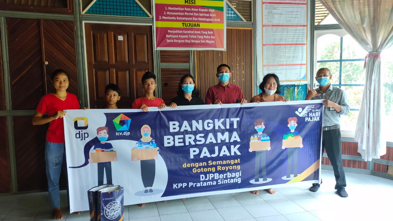 Kantor Pelayanan Pajak (KPP) Pratama Sintang ikut meriahkan kegiatan Pekan Direktorat Jenderal Pajak (DJP) Peduli dengan memberikan santunan kepada Panti Asuhan Cahaya Purnama yang berlokasi di Desa Sungai Ukoi, Kec. Sungai Tebelian, Kab. Sintang (Kamis, 09/07). Kegiatan Pekan DJP Peduli ini merupakan kegiatan tahunan yang diselenggarakan oleh DJP guna memperingati Hari Pajak yang jatuh pada 14 Juli 2020.