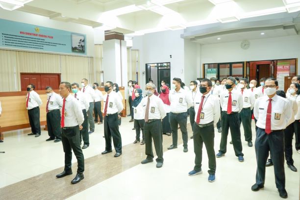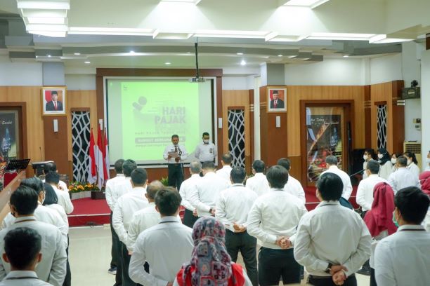 Kanwil DJP Kalimantan Barat melaksanakan upacara bendera di Aula Kanwil DJP Kalimantan Barat, Pontianak (Selasa, 14/7). Upacara bendera ini merupakan rangkaian acara peringatan Hari Pajak yang diperingati setiap tanggal 14 Juli sejak tahun 2018.