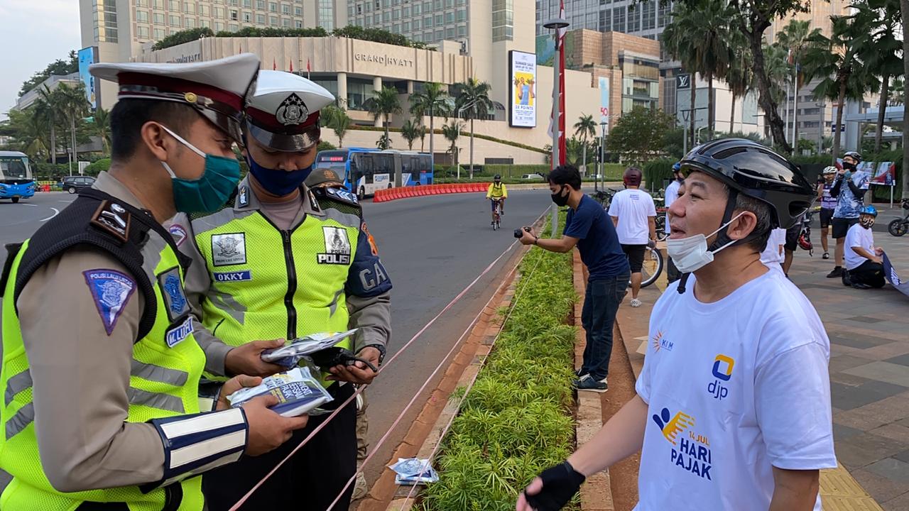 Adapun rute kegiatan bersepeda bersama ini dimulai dari KPP Madya Jakarta Timur-berputar di Tugu Tani-MI Ridwan Rais-Merdeka Selatan-MH Thamrin (jalur sepeda)-berputar di Bunderan HI-MH Thamrin-Merdeka Selatan-Gambir-KPP Madya Jakarta Timur. Kepala Kantor Wilayah DJP Jakarta Timur Arfan turut membagikan kit kenormalan baru berupa masker dan flyer Hari Pajak kepada para warga yang melintas selama kegiatan bersepeda berlangsung.