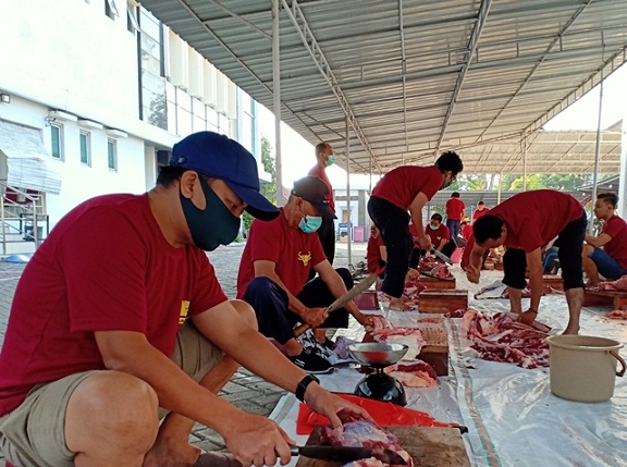 Meskipun dilaksanakan di tengah pandemi Covid-19, tidak mengurangi semangat pegawai untuk melaksanakan pemotongan hewan kurban. Dengan menerapkan protokol kesehatan yang ada, para pegawai organik maupun non organik saling bergotong royong sejak pukul 06.00 WIB hingga 11.00 WIB. Selanjutnya daging kurban disalurkan kepada pegawai non organik, masyarakat sekitar, dan fakir miskin.