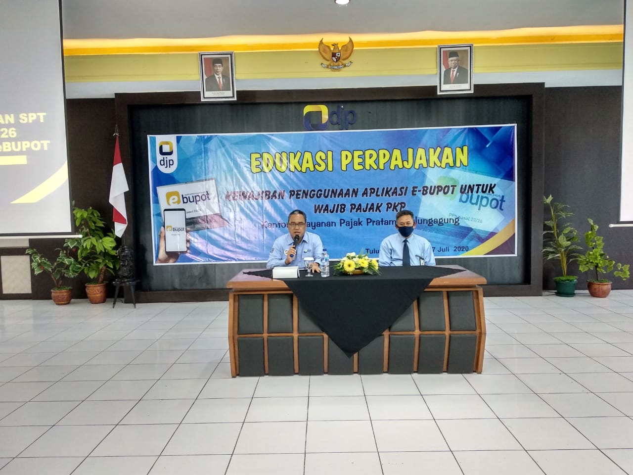 KPP Pratama Tulungagung mengadakan acara Edukasi Perpajakan Kewajiban Penggunaan Aplikasi e-Bupot untuk Wajib Pajak PKP di Aula KPP Pratama Tulungagung (Jumat, 17/7). Acara ini diadakan selama tiga hari sejak Rabu, 15 Juli 2020.