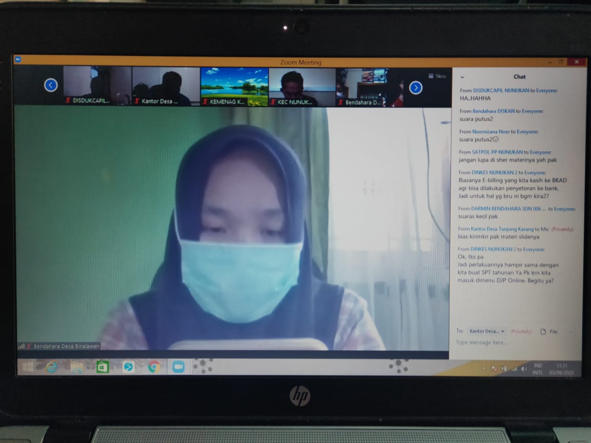 Kantor Pelayanan, Penyuluhan, dan Konsultasi Perpajakan (KP2KP) Nunukan memberikan edukasi dan pelatihan terkait e-Bupot kepada 40 Bendahara Pemerintah di Kabupaten Nunukan secara daring melalui aplikasi Zoom Meeting yang dipandu dari KP2KP Nunukan (Jumat, 4/9).