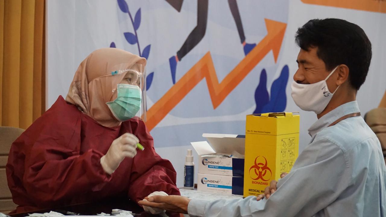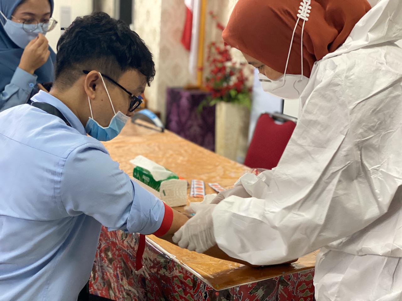 Seluruh pegawai Kanwil DJP Sumatera Barat dan Jambi mengikuti tes cepat Covid-19 di aula kantor di Kota Padang (Rabu, 9/9). Kegiatan ini juga dilaksanakan serentak oleh seluruh KPP dan KP2KP di lingkungan Kanwil DJP Sumatera Barat dan Jambi.