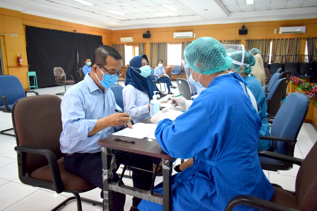 Pelaksanaan dimulai dari pukul 09.00 WIB sampai dengan pukul 11.15 WIB. Tes ini dilakukan dengan cara mengambil sampel darah tiap-tiap pegawai yang kemudian hasilnya akan diumumkan secara langsung kepada pegawai yang bersangkutan. Pegawai yang hasil tes cepatnya dinyatakan reaktif akan ditindaklanjuti dengan pelaksanaan Tes Swab-PCR.