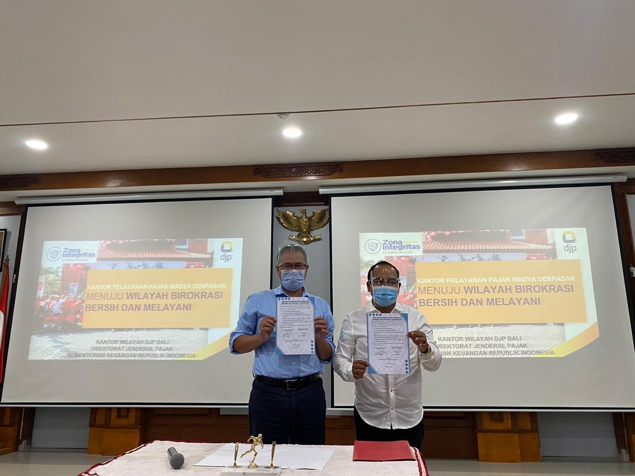 Acara ditutup dengan penandatanganan Deklarasi Kesepakatan Integritas Bersama antara KPP Madya Denpasar dan Kadin Kota Denpasar. KPP Madya Denpasar berharap para pengampu kepentingan juga mendukung segala kegiatan dan kebijakan KPP Madya Denpasar dalam rangka melaksanakan dan meraih predikat Wilayah Birokrasi Bersih dan Melayani.