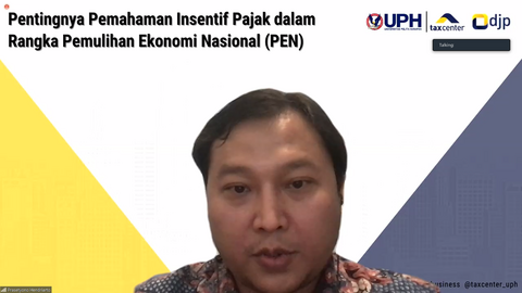 Kanwil DJP Banten bersama Universitas Pelita Harapan (UPH) mengadakan webinar dengan Tema "Pentingnya pemahaman Insentif Pajak dalam Rangka Pemulihan Ekonomi Nasional" yang diikuti oleh 384 peserta yang terdiri dari mahasiswa, konsultan pajak, dan akuntan melalui Zoom Meeting di Kanwil DJP Banten (Jumat, 27/11).