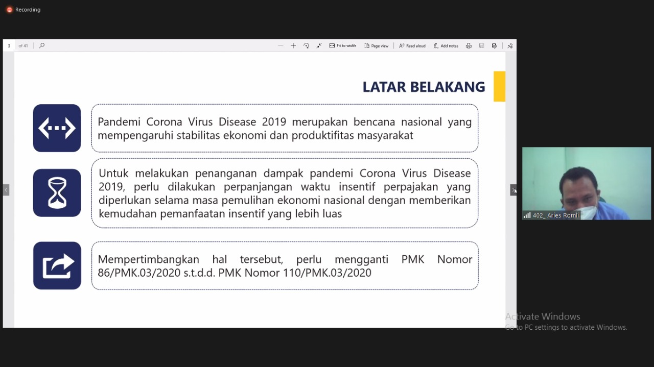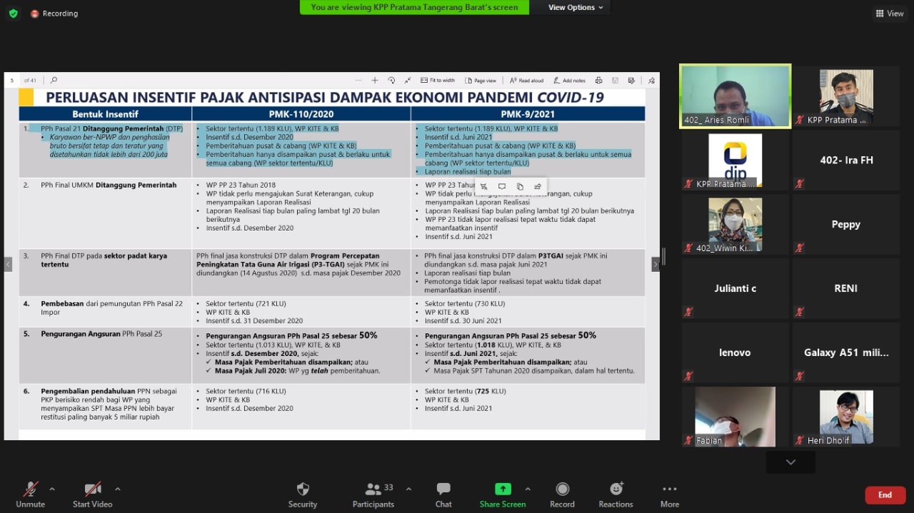 Banyak karyawan mengikuti kelas pajak secara virtual di Tangerang yang diadakan oleh KPP Pratama Tangerang Barat dengan tema tata cara pengisian SPT Tahunan dan insentif pajak bagi wajib pajak terdampak pandemi (Rabu, 3/3).
