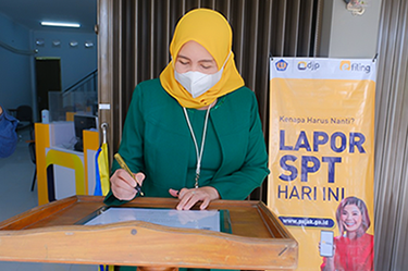 Kepala Kanwil DJP Jawa Barat I Erna Sulistyowati didampingi oleh Kepala KPP Pratama Ciamis Yuddi Hariyanto meresmikan Pos Pelayanan Pangandaran yang baru di Babakan, Pangandaran (Kamis, 1/4).